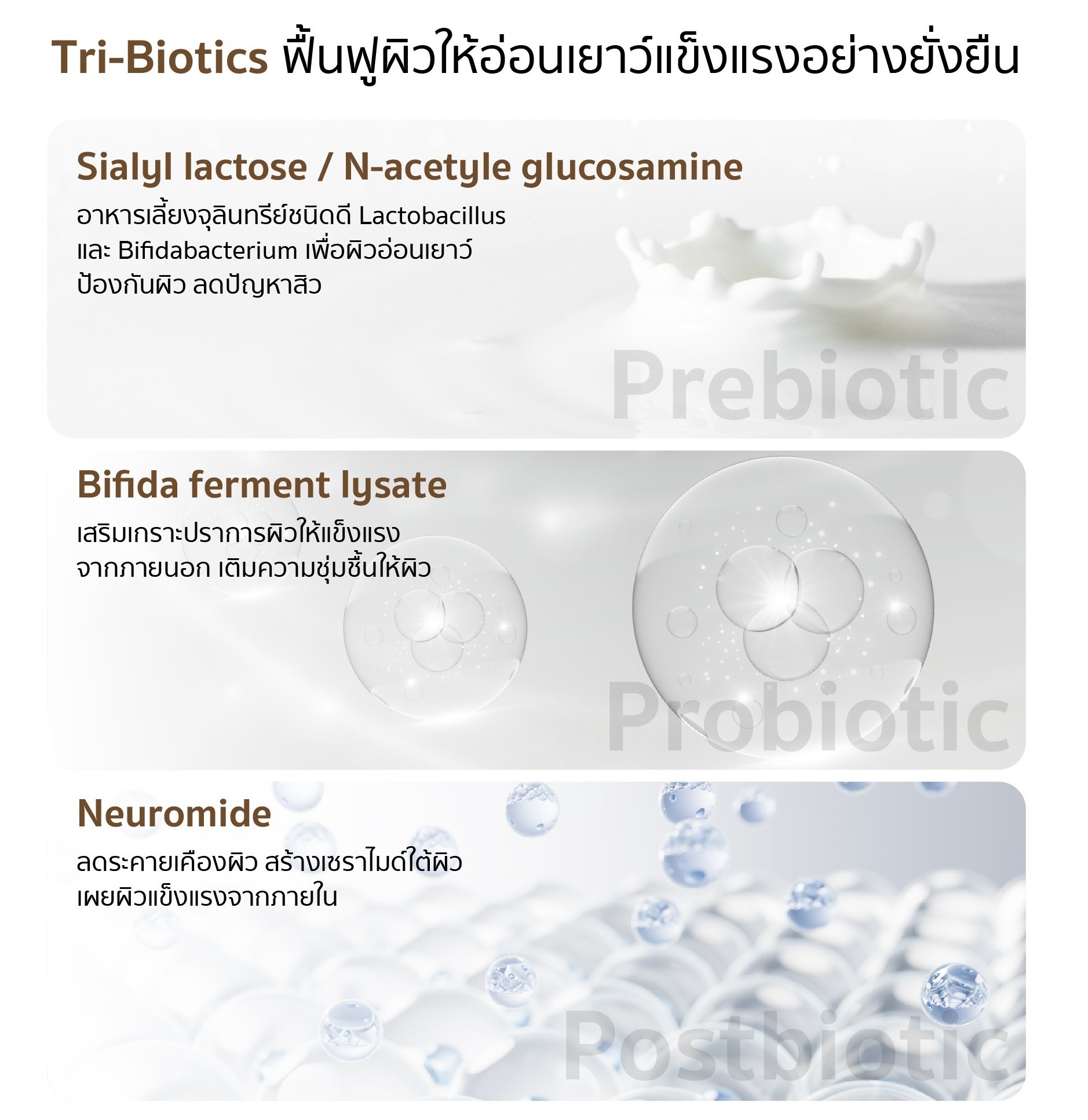3 พลัง Tri-biotics เพื่อเสริมสร้างสมดุลไมโครไบโอมของผิว เพื่อดูแลผิว 5 ประการ